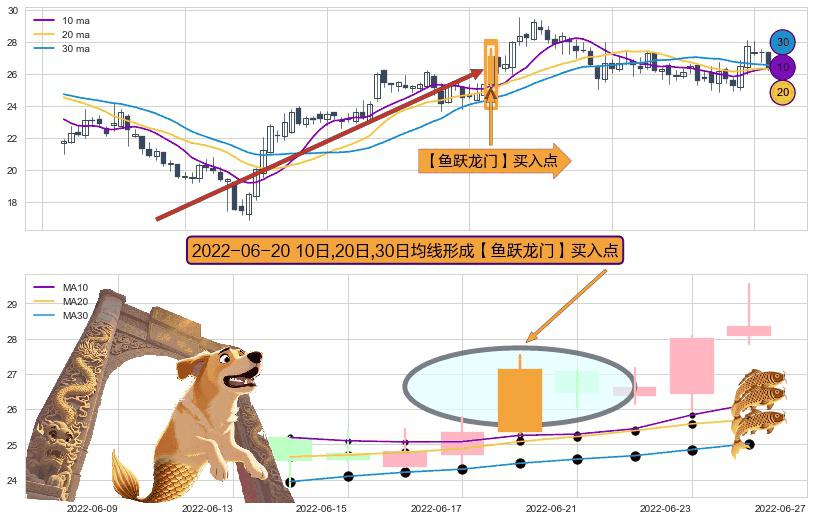 形态多维评估: ⚀ 2022-06-20日显现 10日-20日-30日均线 【鱼跃龙门】买入点 看多信号,后市看涨,买入