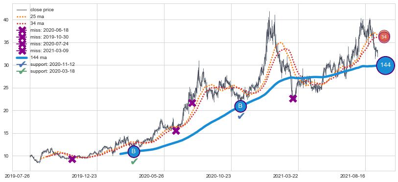 上涨趋势2019-07-26-2021-09-09,均线144确认关键支撑2处