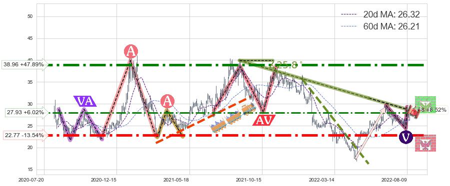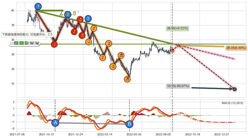 ♘ 阻力价格位27.93,可信任强度67.03%,距离最后交易2022-08-12形成的收盘价格26.34相差 +6.02%