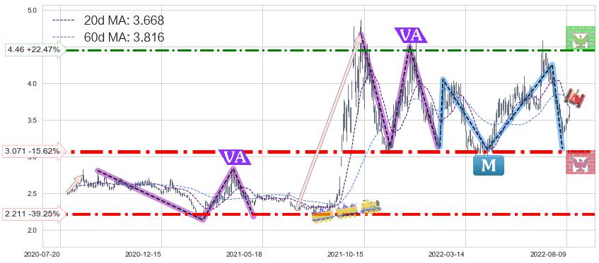 ➣ 【已确认突破】最后价格:3.640与最小【整理】第一目标价格→(2022-10-06: 5.42 )相较: 上涨空间【中等】