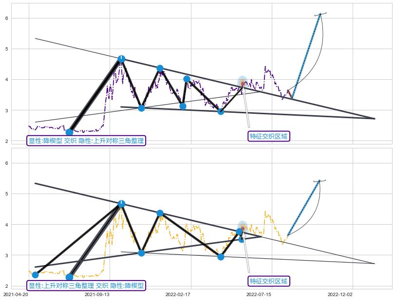 ➣ 【已确认突破】上升【对称】三角形整理 起点:2021-04-30,突破点:2022-05-25,形态共257交易日