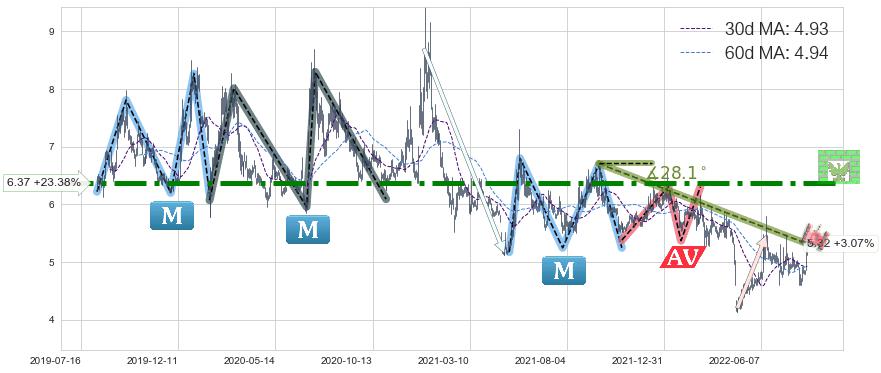 ➣ 【已确认突破】最后价格:5.16与最小【整理】第一目标价格→(2022-09-30: 3.793 )相较: 下跌空间【中等】
