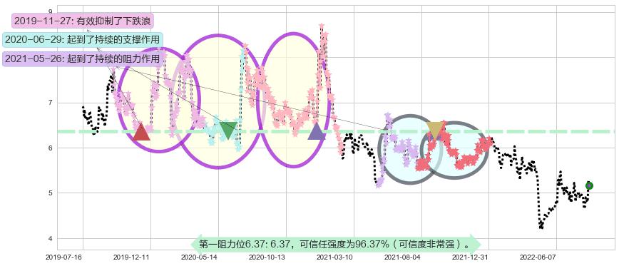 ♞ 第一阻力位6.37价格为6.37,其通过量化计算出的可信任强度为96.37%(可信度非常强)。