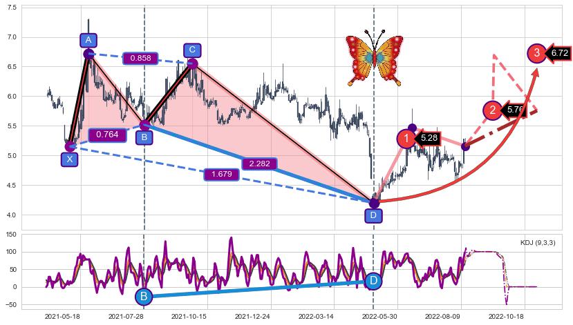 ➣ 已完成【蝴蝶】形态起点X: 2021-04-30, 终点D: 2022-04-28, 共241交易日