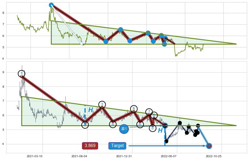 ➢ 最小【整理】第一目标价格→(2022-09-15: 3.869 )