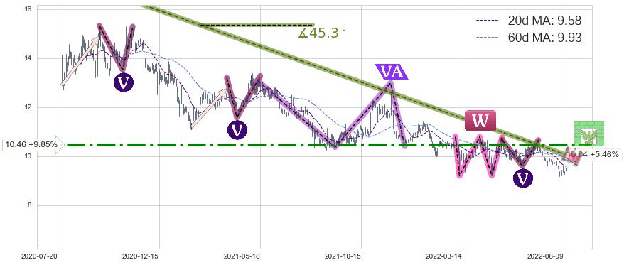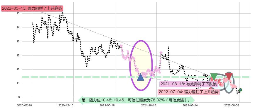 ♘ 阻力价格位10.46,可信任强度78.32%,距离最后交易2022-08-12形成的收盘价格9.52相差 +9.85%