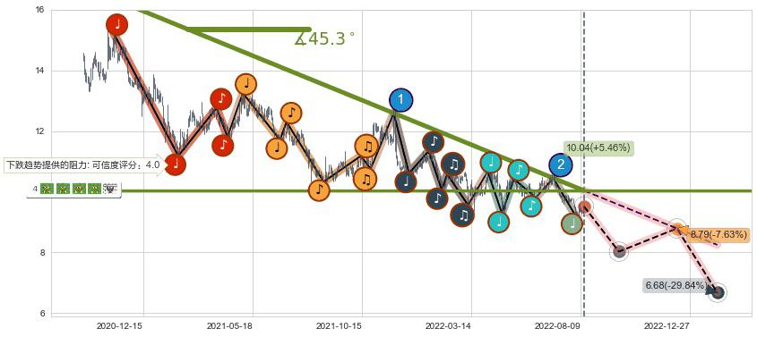 ➣ 预测:2022-12-09,【试探阻力】稳定目前下跌趋势的前提下,预测价格:8.79