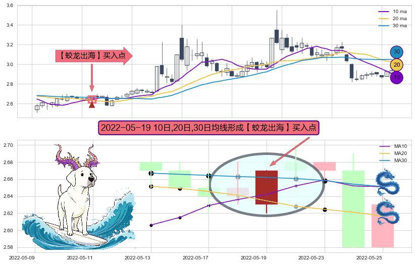 形态多维评估: ⚀ 2022-05-19日显现 10日-20日-30日均线 【蛟龙出海】买入点 看多信号,后市看涨,买入
