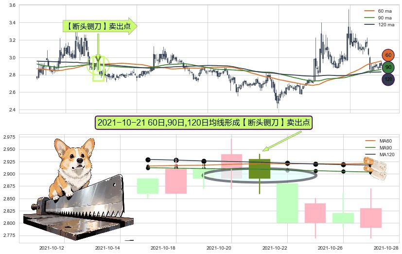 形态多维评估: ⚀ 2021-10-21日显现 60日-90日-120日均线 【断头铡刀】卖出点 看空信号,后市看跌,卖出