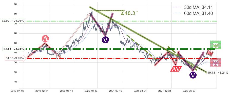 ♘ 支撑价格位34.16,可信任强度67.03%,距离最后交易2022-08-12形成的收盘价格35.58相差 -3.99%