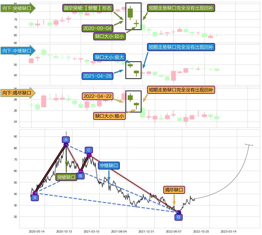 ➢ 2022-04-22形成:向下跳空【竭尽】缺口