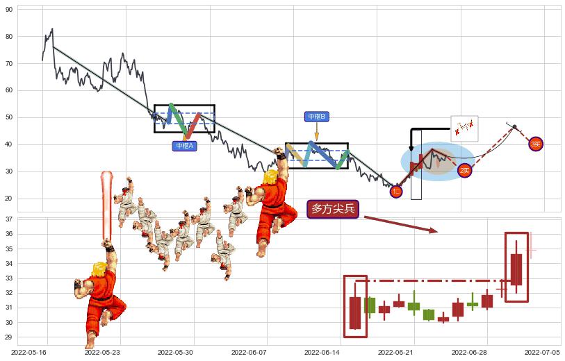 ➣ 收盘价(2022-07-22: 35.12 )→回踩→第二根k线低点(2022-07-20: 36.20 )