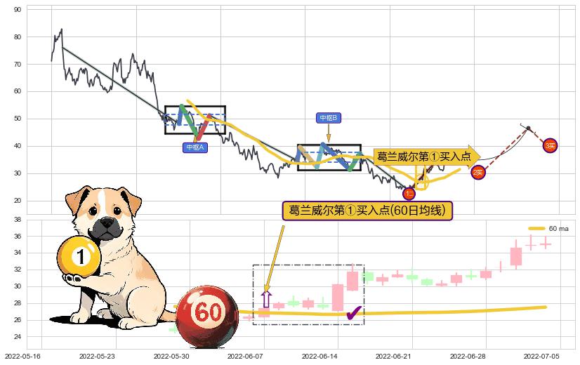 ➢ AI预测: 假定反转如期而至,第❶价格目标位置(2022-10-13, 46.21)