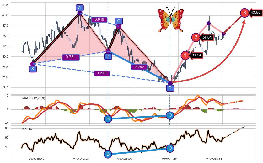➣ 已完成【蝴蝶】形态起点X: 2021-09-22, 终点D: 2022-05-19, 共156交易日