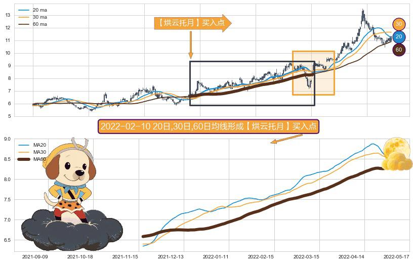 ⚀ 2021-11-17日-2022-05-05日显现 20日-30日-60日均线 【烘云托月】买入点 看多信号,后市看涨,买入