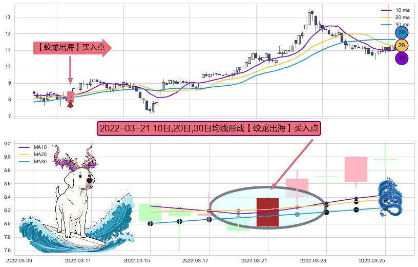 ⚀ 2022-03-21日显现 10日-20日-30日均线 【蛟龙出海】买入点 看多信号,后市看涨,买入