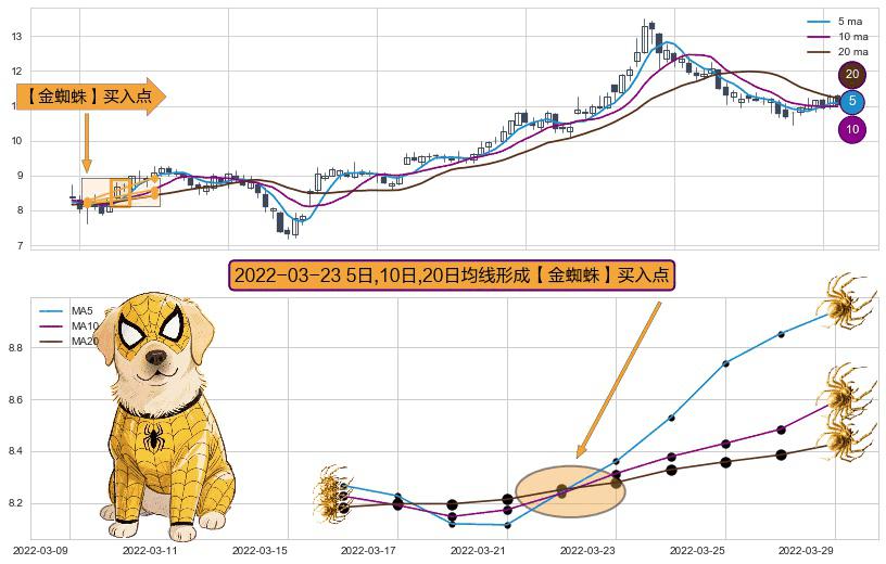 ⚀ 2022-03-23日显现 5日-10日-20日均线 【金蜘蛛】买入点 看多信号,后市看涨,买入