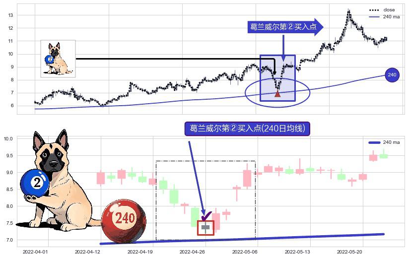 ⚀ 2022-04-26-日显现 葛兰威尔均线 240日均线 第②买入点 上升趋势的中继信号,后市看涨,买进信号