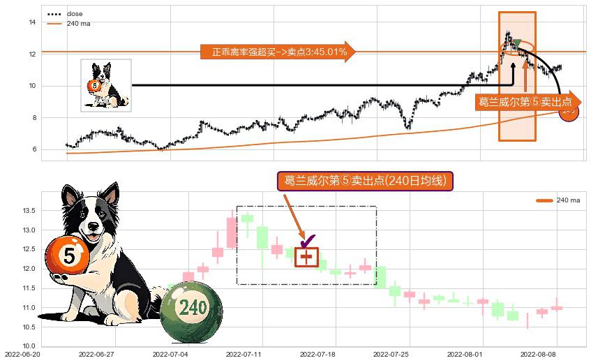 ⚀ 2022-07-14-日显现 葛兰威尔均线 240日均线 第⑤卖出点 上升趋势均值回复的短线回落信号,后市看跌,卖出信号