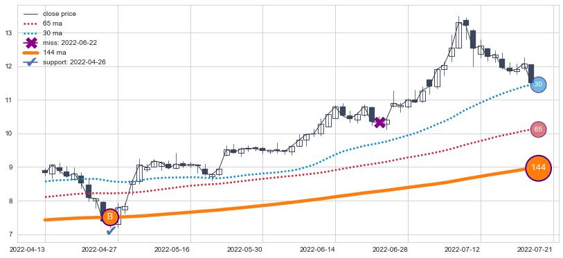 ⚂ 2022-04-25-日均线向下破位,2022-04-27-日重新上穿突破均线,均线支撑再次生效