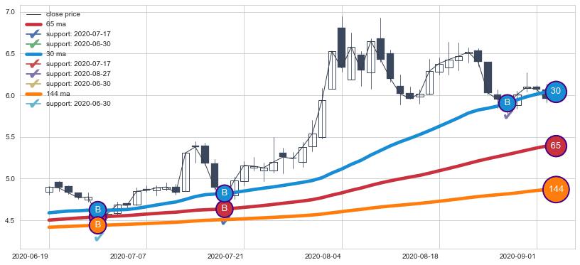 ⚁ MA20和MA30走势平行,且始终保持在短距离内,MA60始终在短中期均线下方,与短中期均线保持一定的距离,微微上行