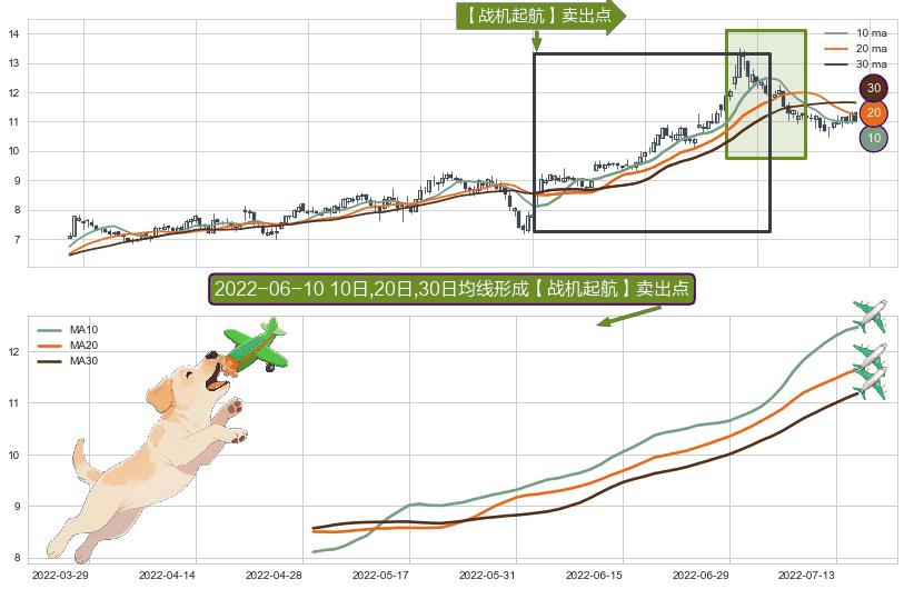 ⚀ 2022-04-29日-2022-07-15日显现 10日-20日-30日均线 【战机起航】卖出点 看空信号,后市看跌,卖出