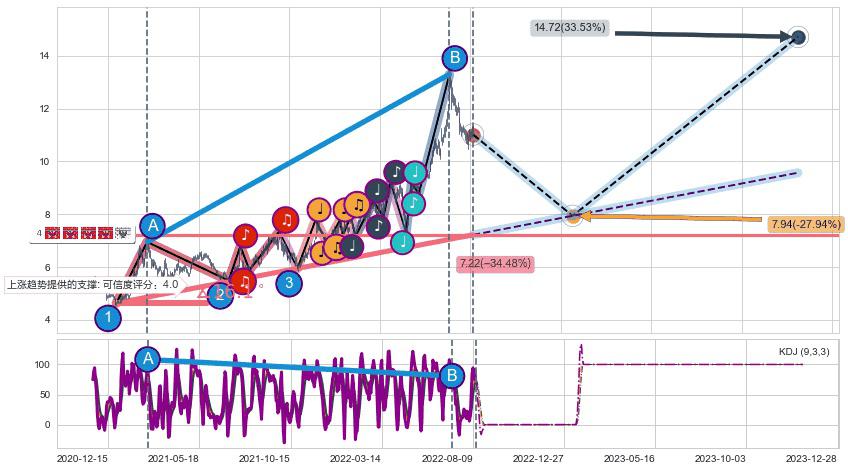 ➢ 预测:2023-01-13,【小幅回撤】稳定目前上涨趋势的前提下,预测价格:7.94