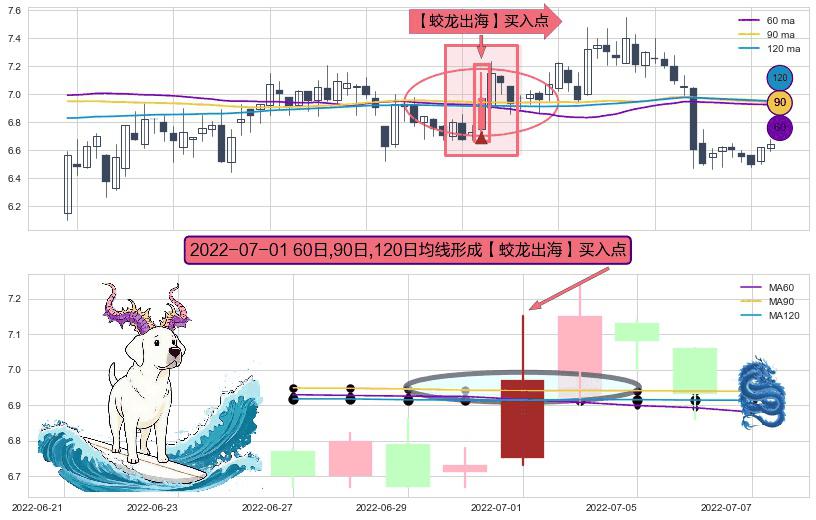 形态多维评估: ⚀ 2022-07-01日显现 60日-90日-120日均线 【蛟龙出海】买入点 看多信号,后市看涨,买入