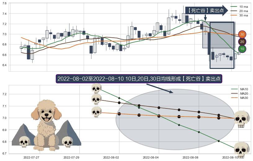形态多维评估: ⚀ 2022-08-03-日至2022-08-10-日显现 10日-20日-30日均线 【死亡谷】卖出点 看空信号,后市看跌,卖出