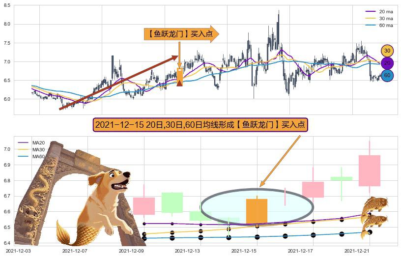 形态多维评估: ⚀ 2021-12-15日显现 20日-30日-60日均线 【鱼跃龙门】买入点 看多信号,后市看涨,买入
