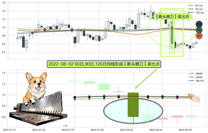 形态多维评估: ⚀ 2022-08-02日显现 60日-90日-120日均线 【断头铡刀】卖出点 看空信号,后市看跌,卖出