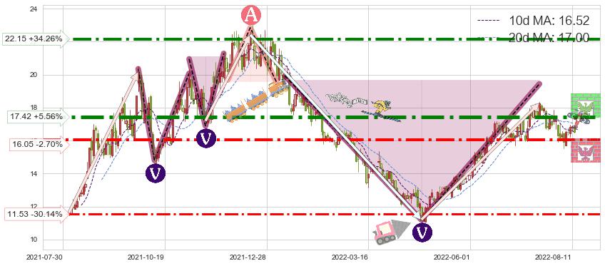 ♘ 阻力价格位17.42,可信任强度87.08%,距离最后交易2022-08-12形成的收盘价格16.50相差 +5.56%