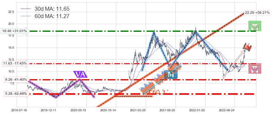 ♘ 支撑价格位11.63,可信任强度64.77%,距离最后交易2022-08-12形成的收盘价格14.09相差 -17.43%