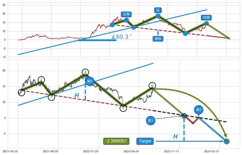 ➣ 最小反转跌幅→𝐇: 8.14 (头部与颈线垂直距离)