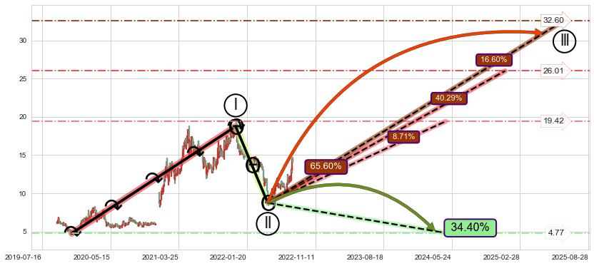 ♘ 支撑价格位8.26,可信任强度70.13%,距离最后交易2022-08-12形成的收盘价格14.09相差 -41.40%