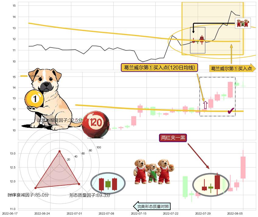 | 4 🅚:多方炮 ➕ 🎢:葛兰威尔第①买入点买入点信号形成后,猜想后续下跌趋势反转上涨趋势(均值回复) ☞ 看多信号 ⇥ 【均线】交织【🅚线】⇥ 综合量化分数: 65 | > |
