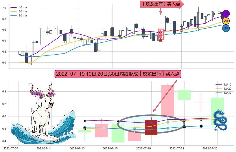 ⚀ 2022-07-19日显现 10日-20日-30日均线 【蛟龙出海】买入点 看多信号,后市看涨,买入