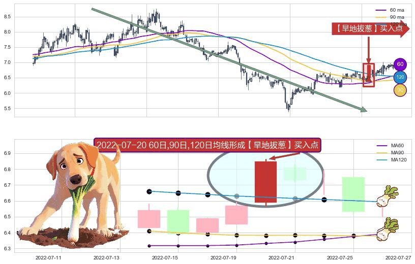 ⚀ 2022-07-20日显现 60日-90日-120日均线 【旱地拔葱】买入点 看多信号,后市看涨,买入