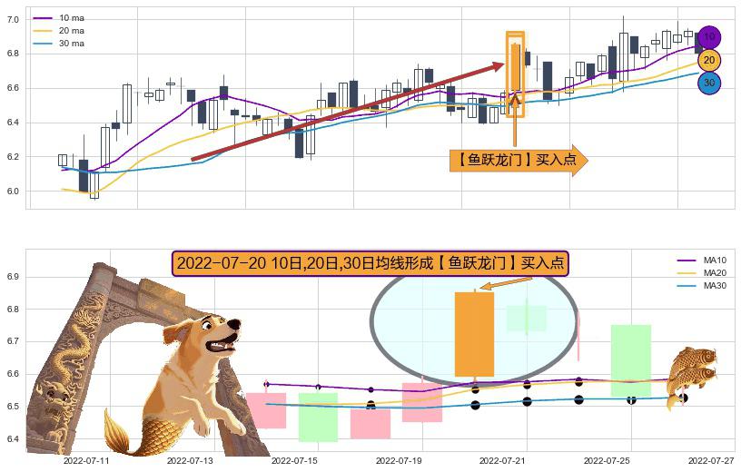 ⚀ 2022-07-20日显现 10日-20日-30日均线 【鱼跃龙门】买入点 看多信号,后市看涨,买入