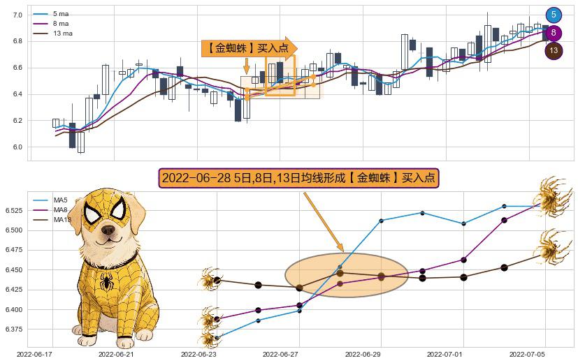 ⚀ 2022-06-28日显现 5日-8日-13日均线 【金蜘蛛】买入点 看多信号,后市看涨,买入