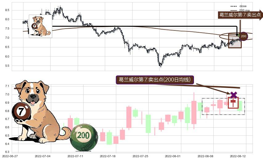 ⚀ 2022-08-11-日显现 葛兰威尔均线 200日均线 第⑦卖出点 下降趋势的中继信号,后市看跌,卖出信号