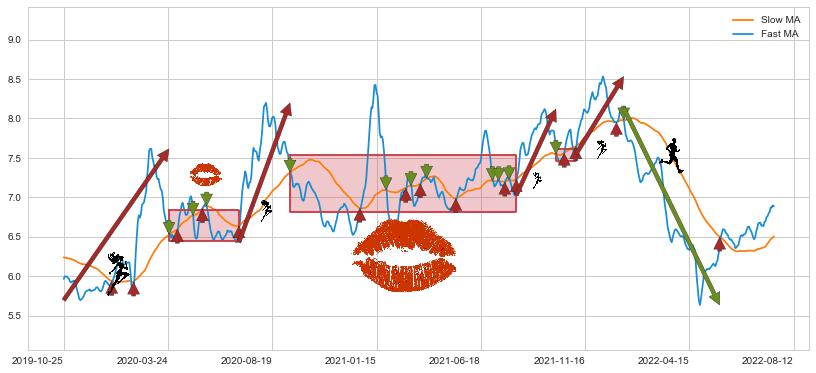 2022-01-07至2022-05-31 慢线与快线呈空头排列, 慢线与快线接触少,无缠绕