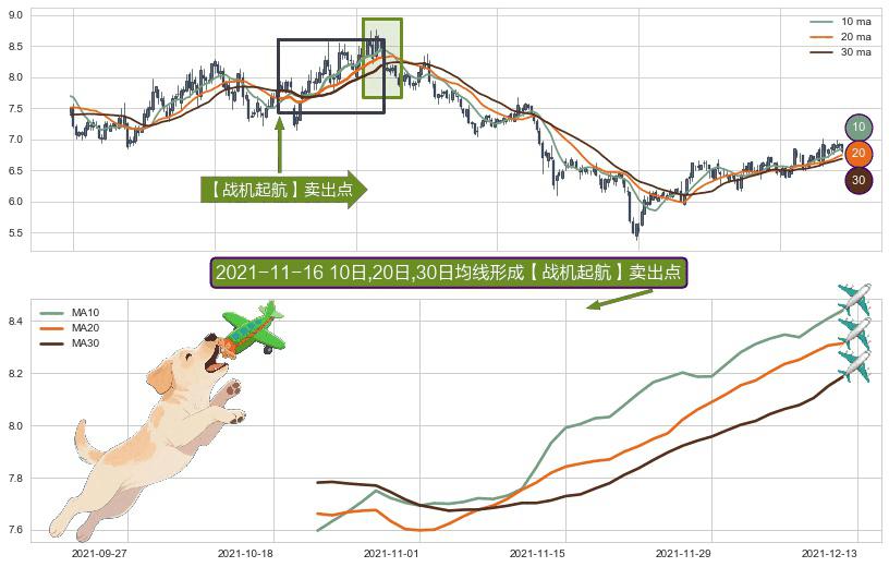 ⚀ 2021-10-21日-2021-12-10日显现 10日-20日-30日均线 【战机起航】卖出点 看空信号,后市看跌,卖出