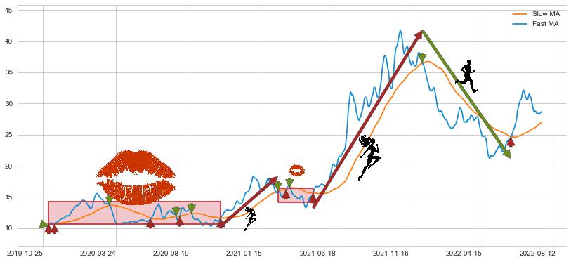 2021-12-10至2022-06-15 慢线与快线呈空头排列, 慢线与快线接触少,无缠绕