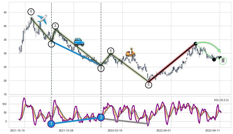 ➣ AI预测: 假定反转启动后, 第❸目标位置(2023-06-21, 19.56)