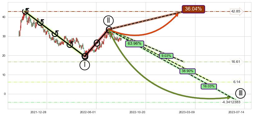 ➣ AI预测: 假定反转启动后, 第❶目标位置(2023-04-14, 33.27)