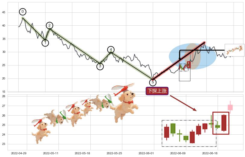 ➢ 最后的下跌趋势2021-10-27至2022-05-19:存在突破迹象,后续小反弹或者反转上涨