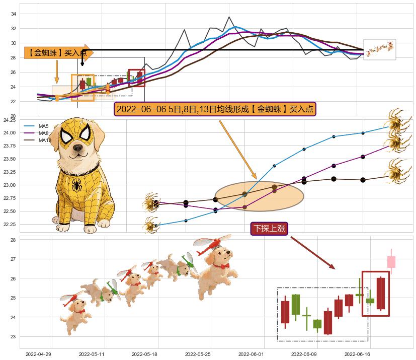 ➢ 低点影线(2022-06-21: 25.90 )→回踩→第二根k线低点(2022-06-20: 26.21 )