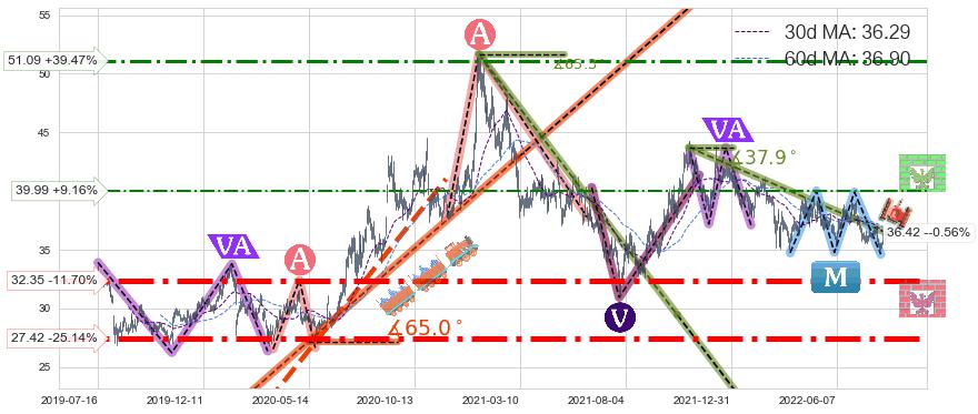 ♞ 30日均线:36.29,60日均线:36.90→ 快线<慢线