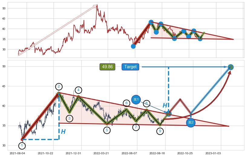 ➣ 最小中继整理涨幅→𝐇: 23.09 (𝐇旗杆的长度:旗杆起点→顶点)